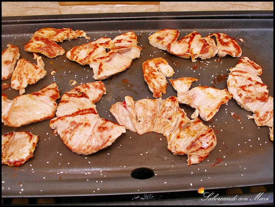 Montar la tosta con salmorejo, solomillo y encima el jamón