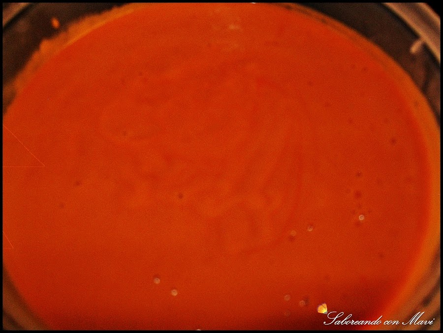 Preparar el salmorejo con tomates, pan del día anterior, sal, vinagre y aove.
