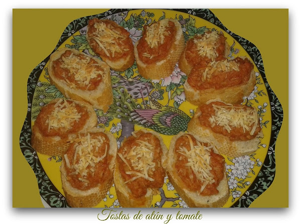 Aprovechando que me ha sobrado pan de ayer, he realizado estas "tostas" ricas y saludables. Se preparan enseguida, y pueden ser un plato ideal como entrante, tanto en la comida, como en la cena.