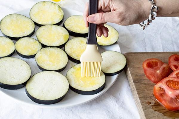 Las disponemos en un plato, las salamos y con la ayuda de una brocha les untamos un poco de aceite virgen extra por cada lado.