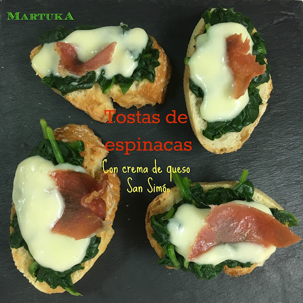 Los ingredientes casan de maravilla y resulta muy suave por las espinacas, pero a la vez el sabor ahumado del queso San Simón y el curado del jamón le imprimen carácter a esta tosta. Hacedlas y decidme qué os parecen, vale?