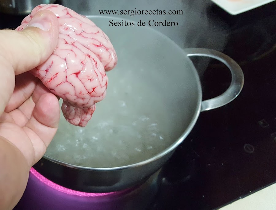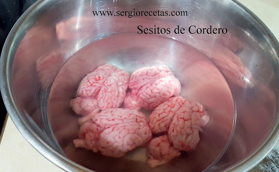 Si los sesos no vienen limpios los meteremos en agua con hielo un ratillo y les quitaremos una membrana transparente que tienen.