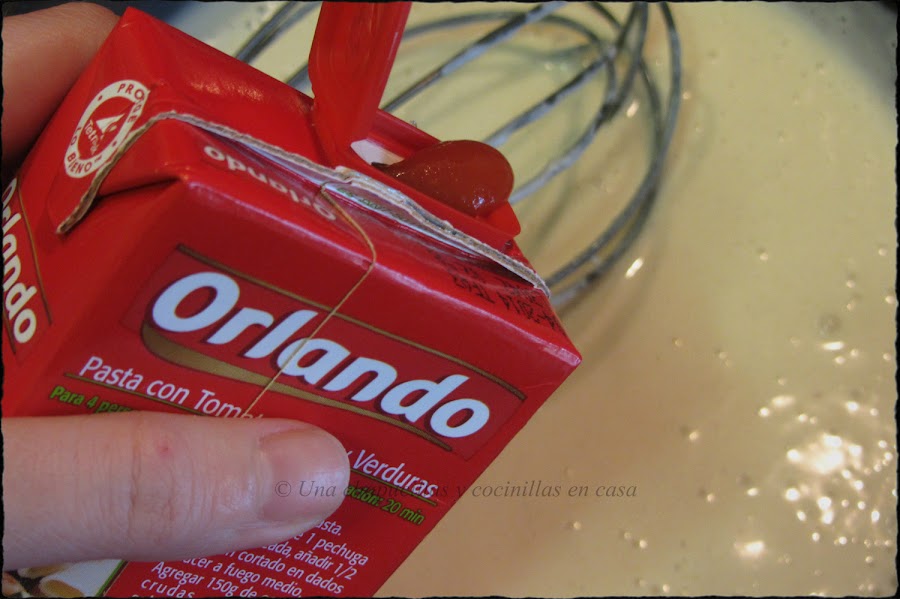 Antes de retirar del fuego agregarle 1 o dos cucharadas de tomate frito y remover.
