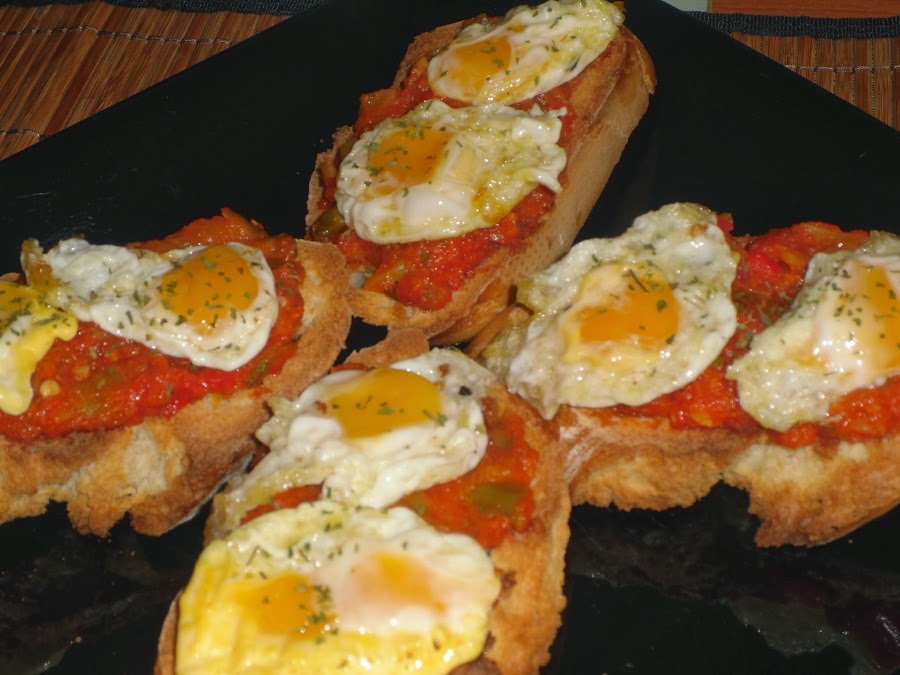 TOSTAS DE PISTO Y HUEVOS DE CODORNIZ