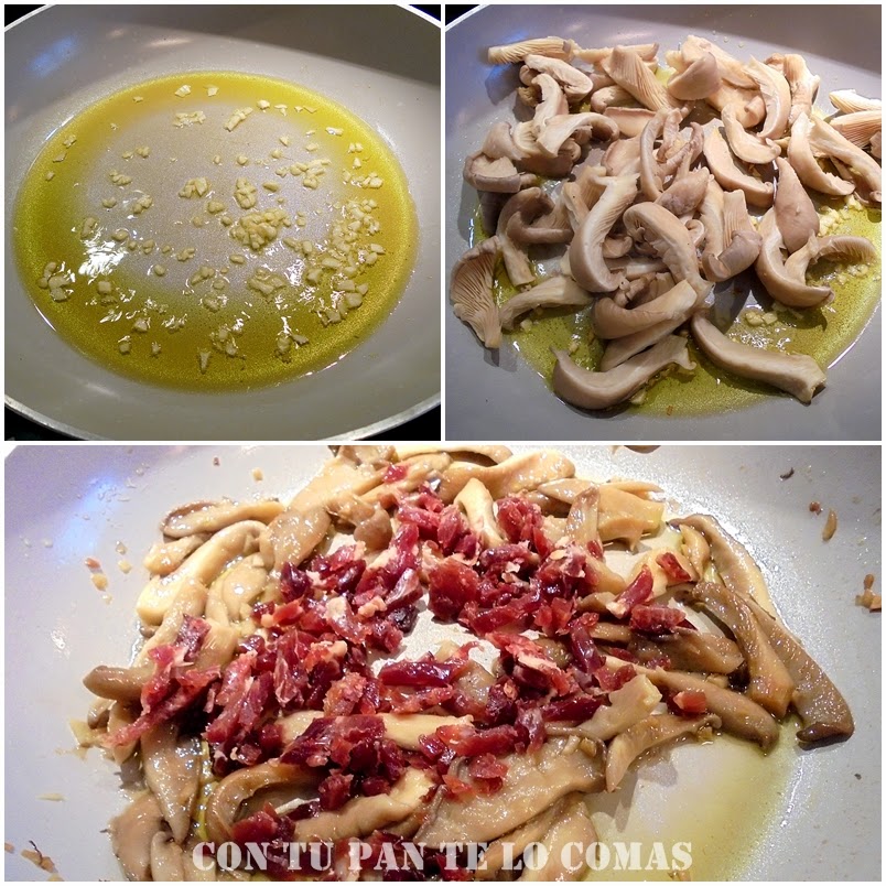 El de hoy es de setas y jamón ibérico, un clásico que gusta a todo el mundo (a todo el mundo que le gusten las setas...), y encima de unas rebanadas tostadas de pan payés o de pueblo, te resuelve una cena estupendamente si lo acompañas de una ensalada.