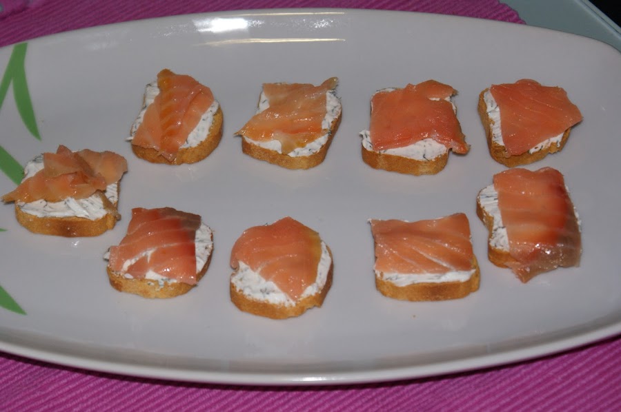 Más facil no pueden ser, sobre la tostada se unta el queso y sobre él se extienden los trozos cortados del salmón ahumado, se rocía todo con limón y listo para tomar.