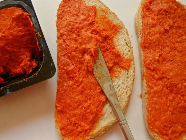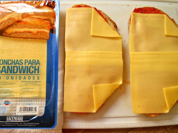 El segundo método consiste en untar cada rebanada de pan con sobrasada; (este fue el método que yo empleé).