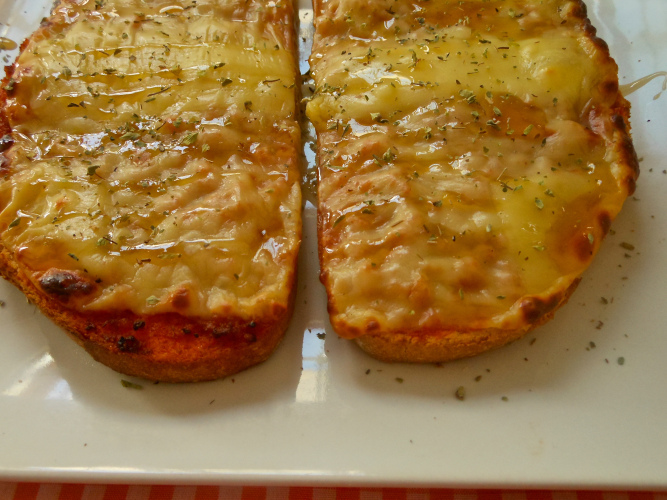 Introduce las rebanadas en el horno hasta que el pan se tueste y el queso se haya fundido, en mi caso fueron 6 minutos.