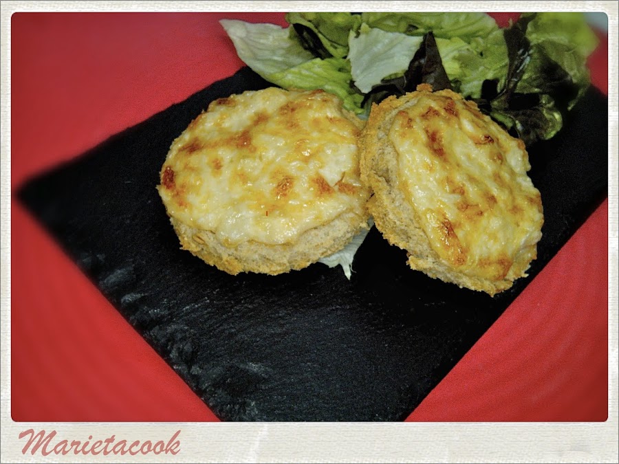 Ingredientes para 4 comensales1 cebolla,4 cucharadas de queso rallado emmental,3 cucharadas de mahonesa,y 4 rebanadas grandes de pan de molde Rallar la cebolla y mezclar bien con la mahonesa y el que ...