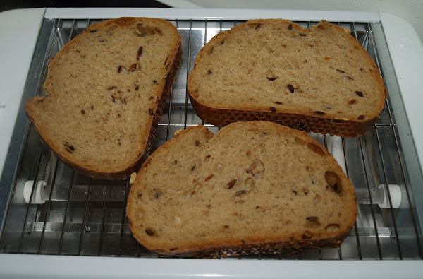 - Cortamos las rodajas de pan y las tostamos un poco.
