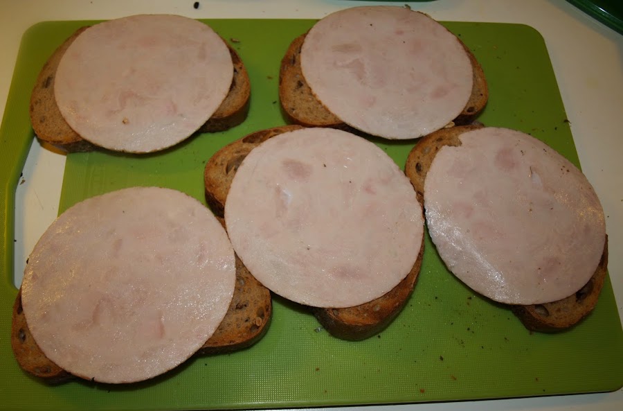 - A continuación colocamos una loncha de pavo sobre cada rebanada de pan.