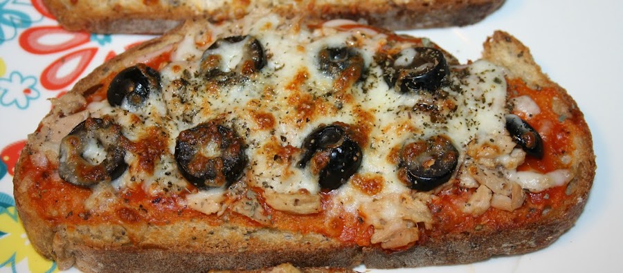Tostas de atún y aceitunas negras