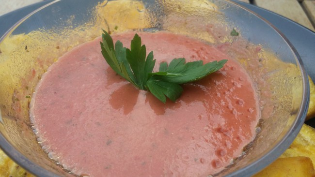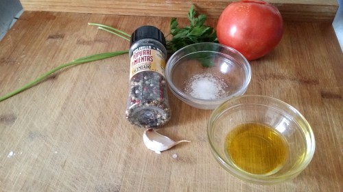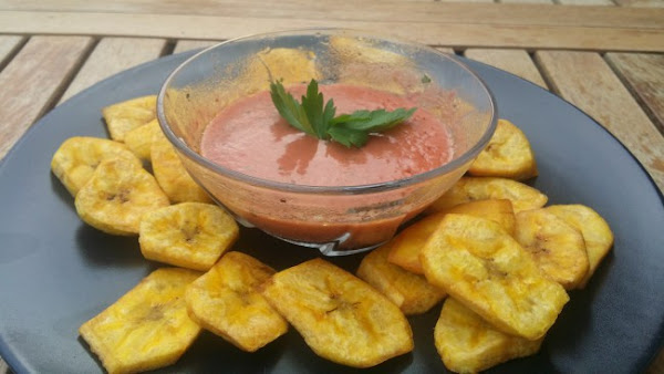 Mi opinión: Un aperitivo diferente y muy original. Se combina perfectamente el sabor del plátano con el tomate. El plátano verde no tiene el mismo sabor dulce que el plátano canario o la banana, tiene un sabor que se asemeja a la patata. Me gusta.