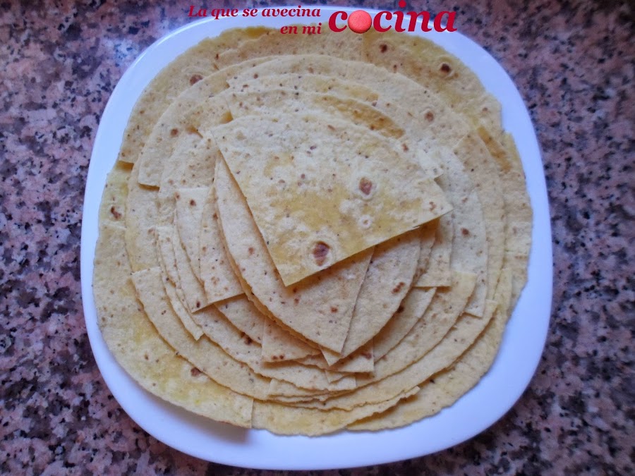 Para hacer los totopos debemos utilizar siempre tortitas de maiz y no de trigo, que son las que habitualmente podemos encontrar en cualquier establecimiento. Ya que si usamos de trigo no quedaran todo lo crujiente que debieran. Además para freirlos es mucho más recomendable hacerlo con aceite de girasol. Así que recordad: tortitas de maiz y aceite de girasol.