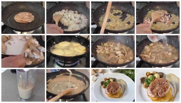 Acompañamos este delicioso tournedo de cordero con la salsa de setas; podéis ponerla aparte para que cada unos se eche a su gusto y con una patatas fritas; y a disfrutar.