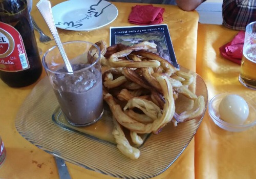 Mi opinión:No descarto volverla a hacer algún día aunque tengo que buscar estómagos de amigos aptos para la morcilla, que a mí me encanta pero a los de mi casa no les va mucho. Os aseguro que la crema sabe mucho a morcilla de Burgos, a pesar de que el calabacín lo ha suavizado. Mi familia se comerá los churros. Jeje