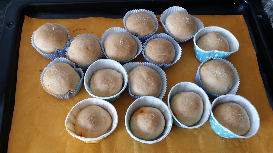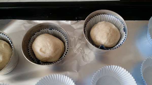 Después nos queda hacer los bollitos, cogiendo porciones similares de la masa y formando bolas con las manos. Si vemos que la masa queda pegajosa se puede espolvorear con un poco de harina, no todas las harinas se absorben igual.