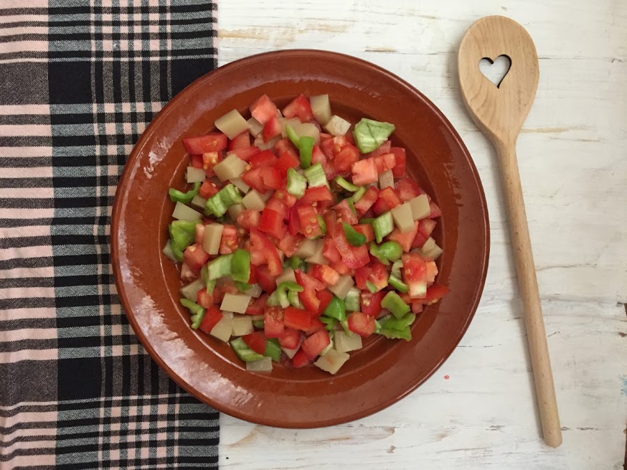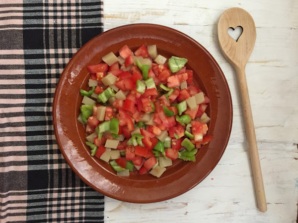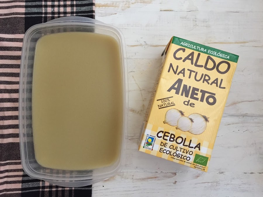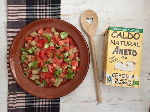 "Los caldos también son para el verano" ya os he hablado en otras entradas de Caldo Aneto, en esta ocasión tenía el caldo de cebolla sin abrir y tenía ganas de estrenar la temporada de nuestra ensalada mallorquina "trampó": en lugar de poner una cebolleta troceada hice una gelatina con el caldo de cebolla.