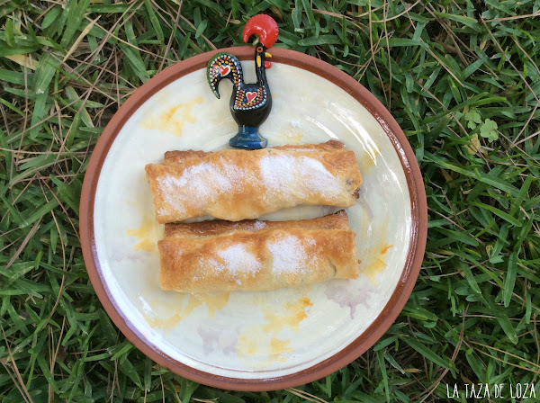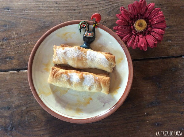 En mi primer viaje a Portugal tengo que confesar que "casi" no me gustaba el bacalao, lo comía cuando no tenía más remedio pero allí me entusiasmó no solo este pescado sino todos sus postres tan buenos como las "queixadas" o estos "travesseiros", palabra que significa: almohadas, la verdad es que lo parecen, pero no me di cuenta hasta que los hice ya que parecían verdaderamente unas pequeñas almohadas (dulces).