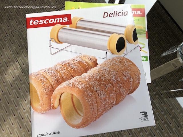 Me traje un molde especial de Trdleník de la marca Tescoma de Praga, allí sus productos son los más vendidos. Podéis encontrarlo en su página online española. No es imprescindible tener el molde porque podríais utilizar unos botes de refresco o botellines de cerveza forrados de papel albal pero bueno, yo por comodidad, me traje mis moldes bajo el brazo. Los originales se hacen sobre brasas o fuego pero estos se hacen al horno. Aunque ya os digo yo que están también deliciosos. Si no tenéis este molde podéis forrar unas latas de refresco con papel albal y listo. Los horneáis en vertical.