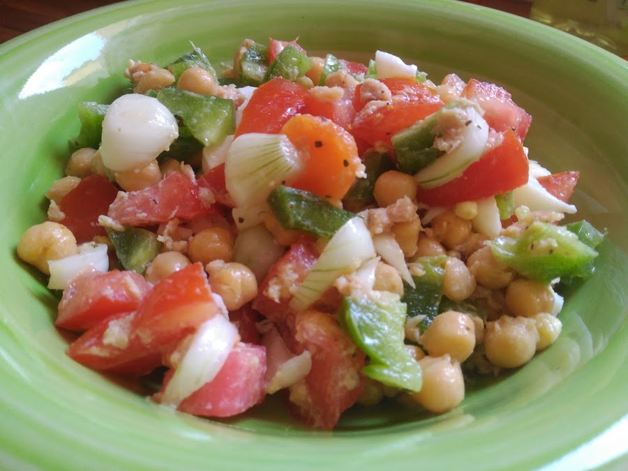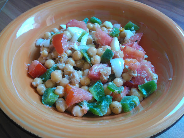 - Sencillísimo: picar todos los ingredientes y mezclarlos con los garbanzos en una ensaladera.