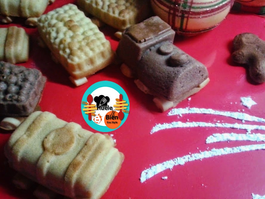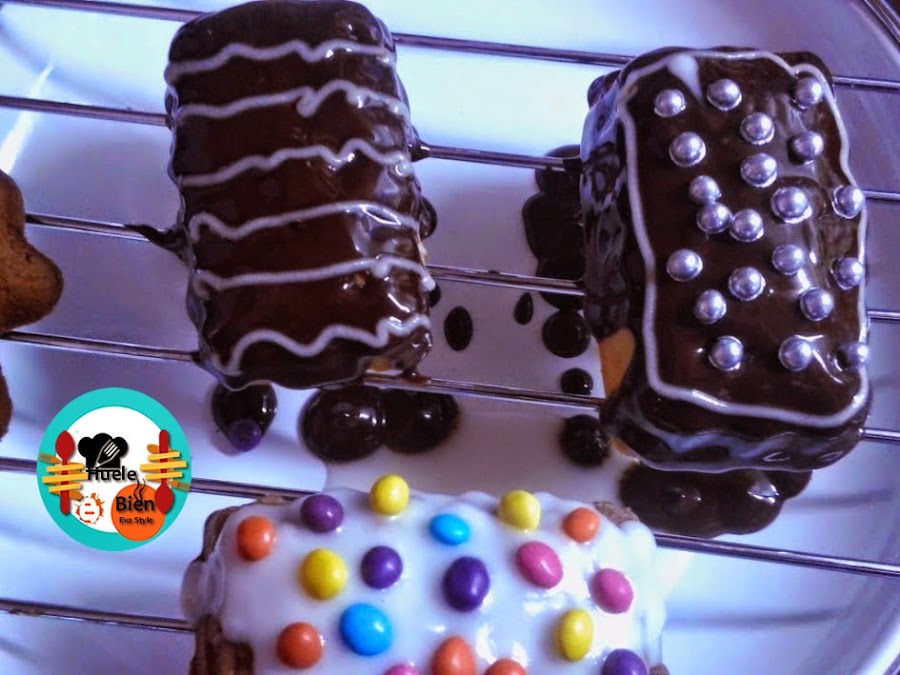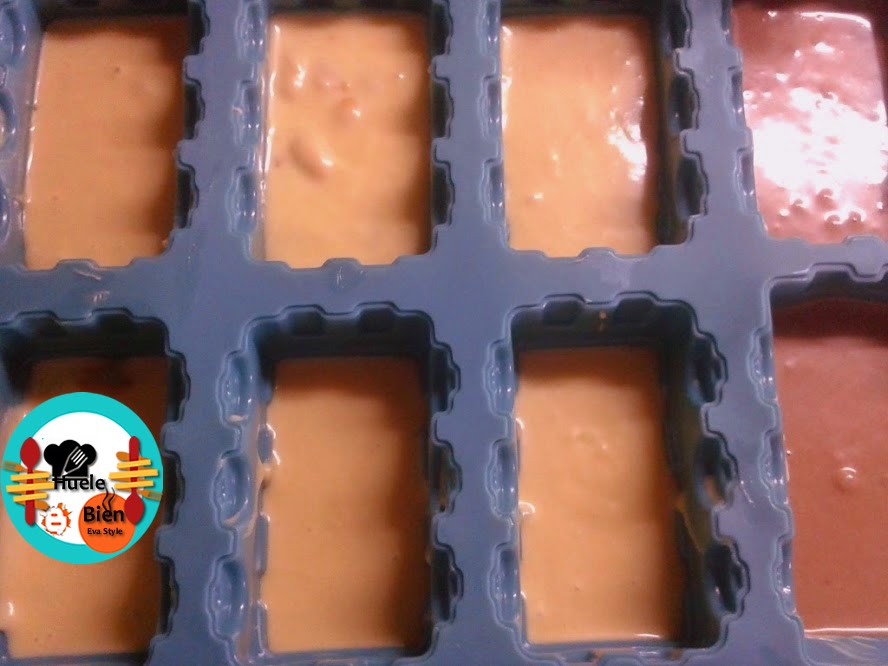 5.- Separamos la masa en 3 recipientes. Mezclamos la masa de unos de ellos con el cacao el polvo. A otro le añadimos los cacahuetes y a la última le ponemos el jengibre rallado. Engrasamos los moldes con margarina y los rellenamos con la masa. Cocinamos los pops entre 20 y 15 minutos. Dejamos enfriar la masa y desmoldamos. Reservamos 24 horas...Rellenamos también el molde de las ruedas.