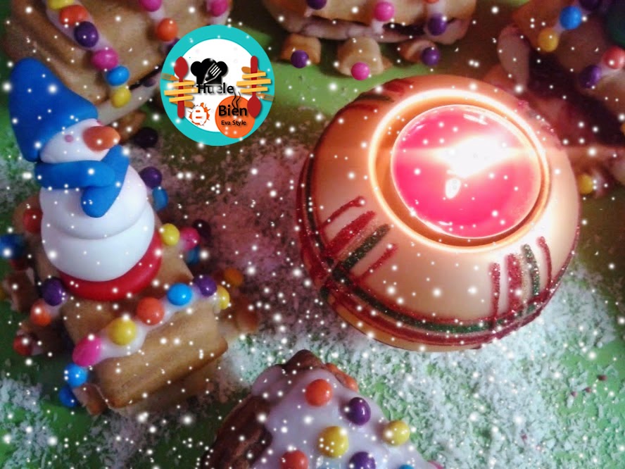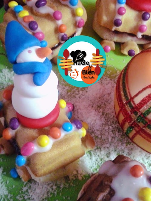10.- Con la pasta fondant hice las figuras de navidad; El papá Noel, el muñeco de nieve y la caja de regalos.