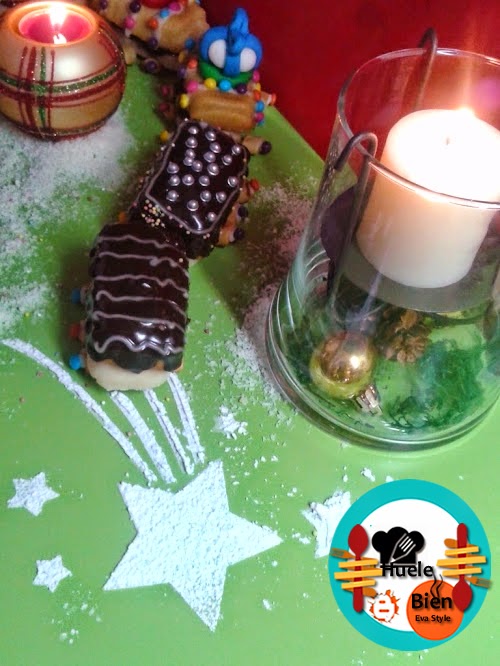 9- Prepare una glasa de azúcar mezclando el azúcar glas con zumo de un poco de agua y unas gotas de zumo de limón. Las pasta tiene que quedar espesa. Luego decore con caramelos sabor chocolate y bolas de azúcar.