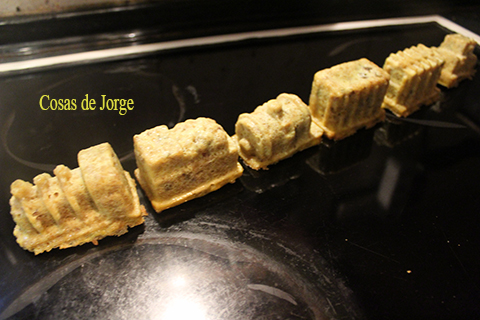 Llenamos los moldes de los vagones de tren y horneamos hasta que se nos cuaje la mezcla.