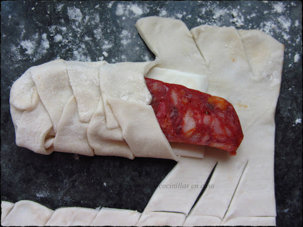 RECETA DE TRENCITAS DE HOJALDRE DE CHORIZO Y QUESO