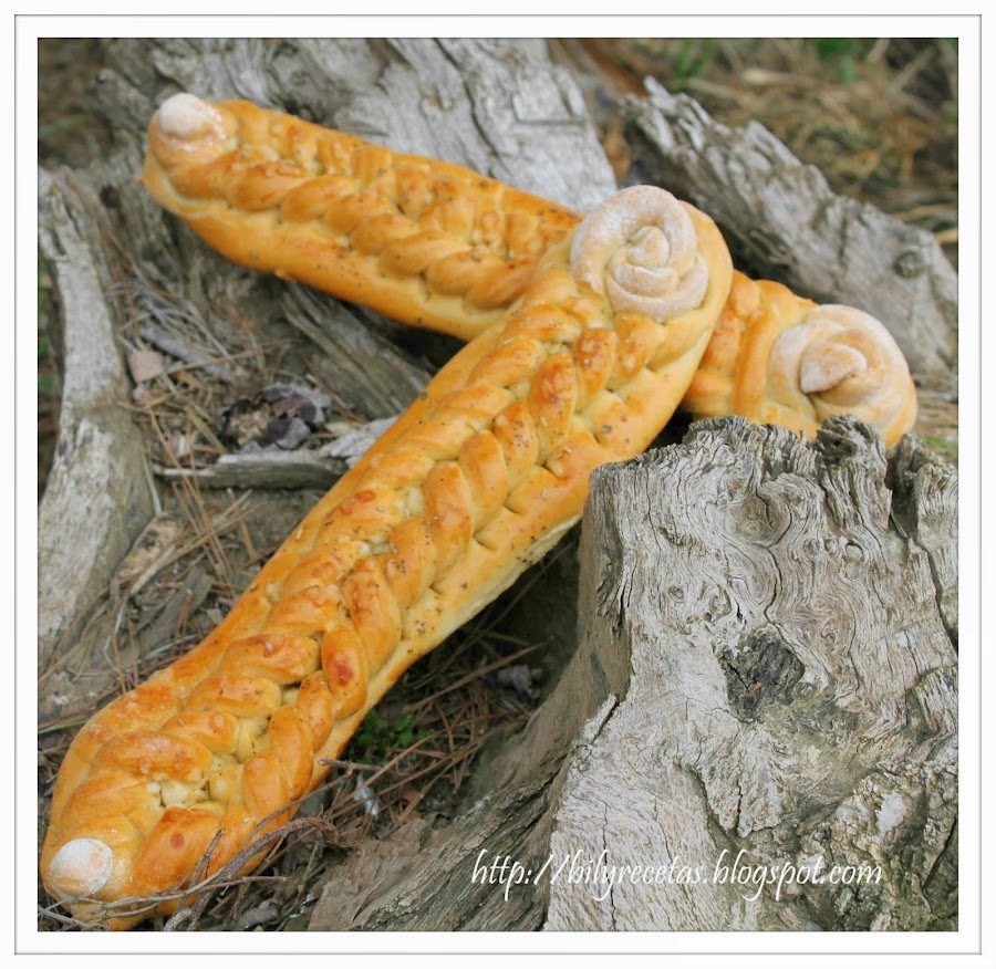 Bueno como habéis insistido tanto en Facebook os las pongo como receta aparte. Use la masa del Pan relleno así que la receta la tenéis allí. Os dejo foto del montaje porque es lo que mas me habéis preguntado. La única diferencia es que antes de hornear las trenzas las he pincelado generosamente con aceite y he espolvoreado hierbas aromáticas y escamas de sal.