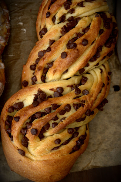 Remove from the oven. Brush with the glazed you have made mixing egg yolk and icing sugar (I avoided to glaze chocolate braided pastry one).