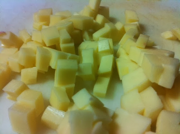 Mientras cortamos el bacon y el queso en daditos y reservamos.