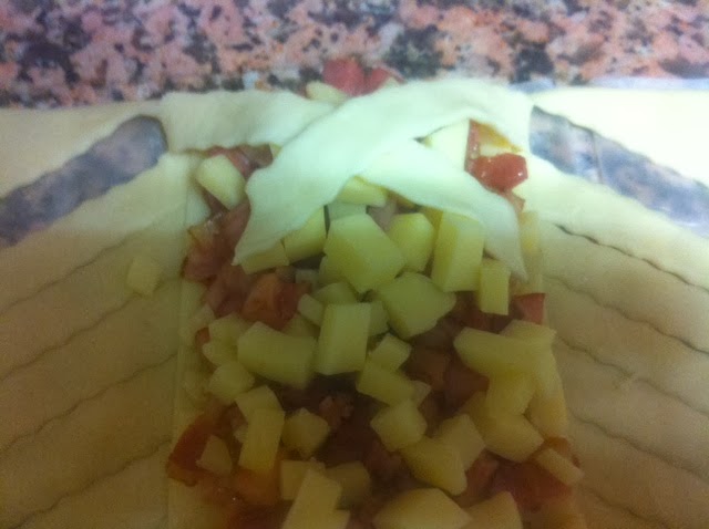 El relleno, es infinito!!! Podéis rellenarla con espinacas y langostinos, roquefort, jamón y nueces, atún y huevo cocido, restos de la carne del cocido con un poco de tomate,...etc