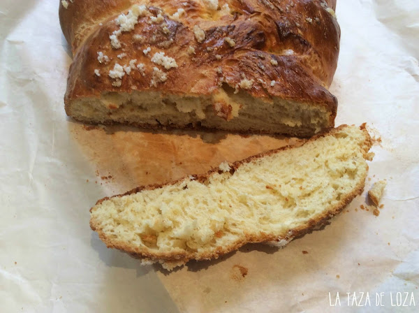Aquí se puede ver como ha quedado de grande y esponjosa, es una masa parecida al roscón de Reyes, pero mucho más sencilla.