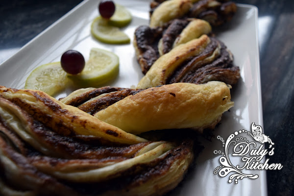 - El hojaldre tiene que ser rectangular para que quede un rulo perfecto a la hora de enrollarlo.