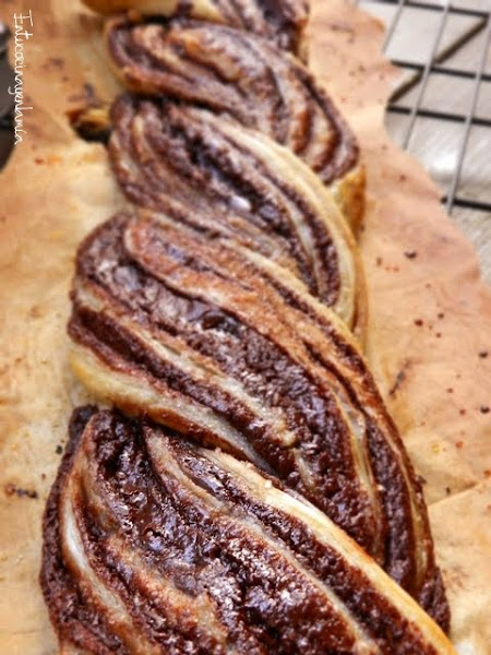 Enrollamos el hojaldre como si formáramos un brazo de gitano. Si se ha puesto un poco blando el hojaldre, lo podemos poner un rato en la nevera, para poder manejarlo mejor.