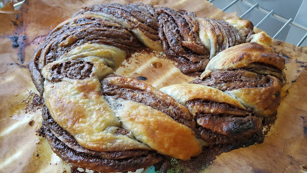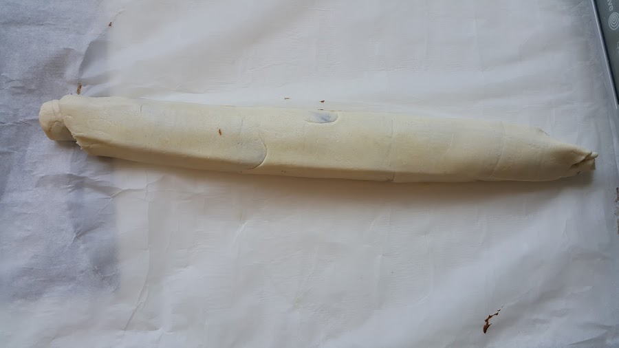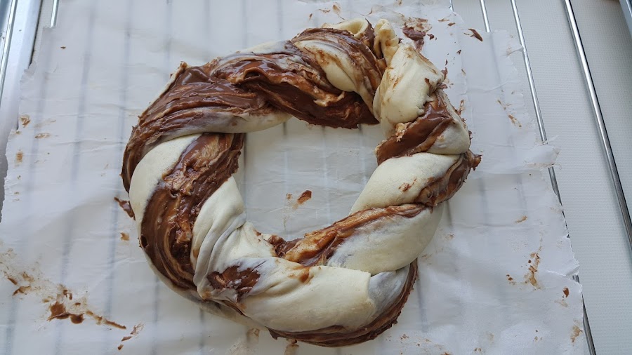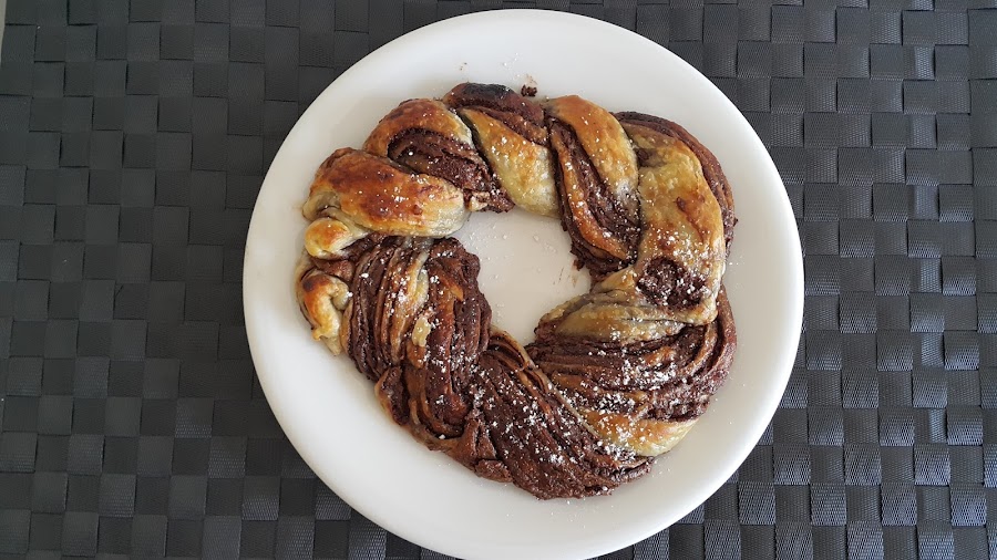 Trenzamos el hojaldre y creamos un círculo uniendo los dos extremos.