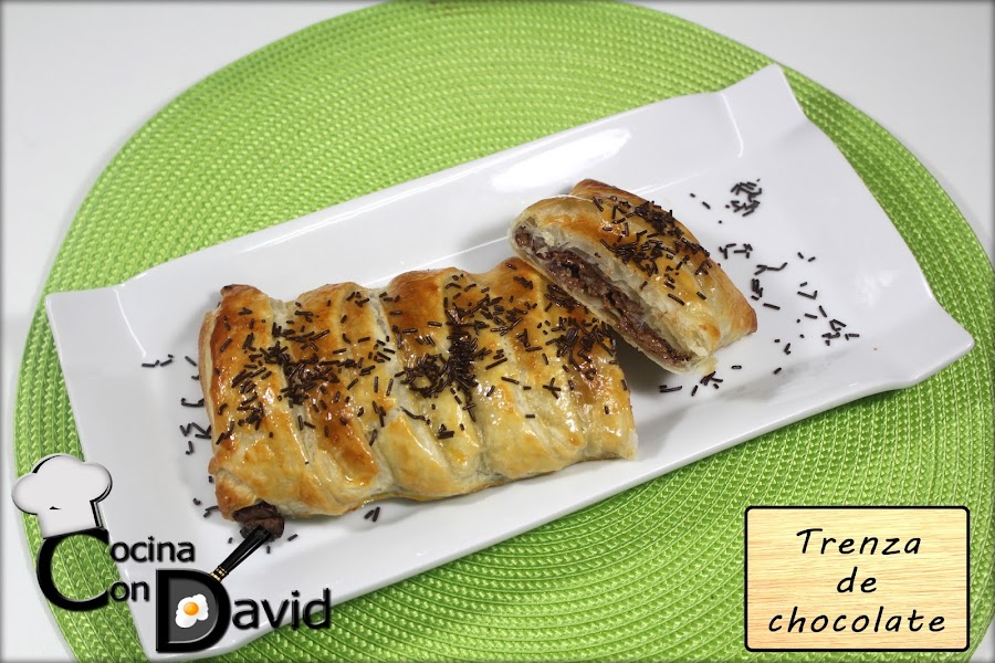 Hoy vamos a preparar una trenza de hojaldre rellena de chocolate. Cortada en rectángulos, puede ser perfecta, para una meriendia, celebración o cumpleaños.
