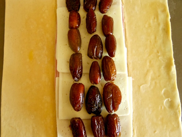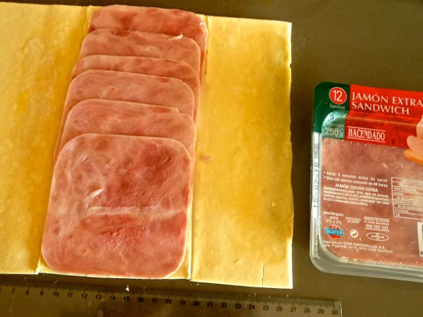 Después coloca en la parte central las lonchas de jamón cocido, interponiendo una sobre otra.