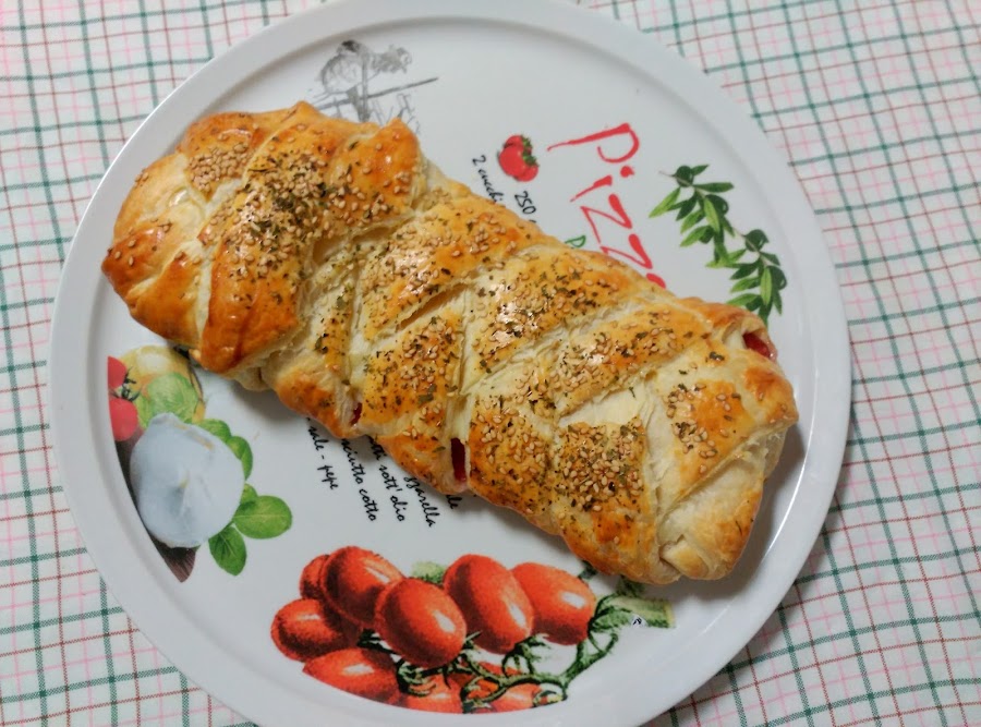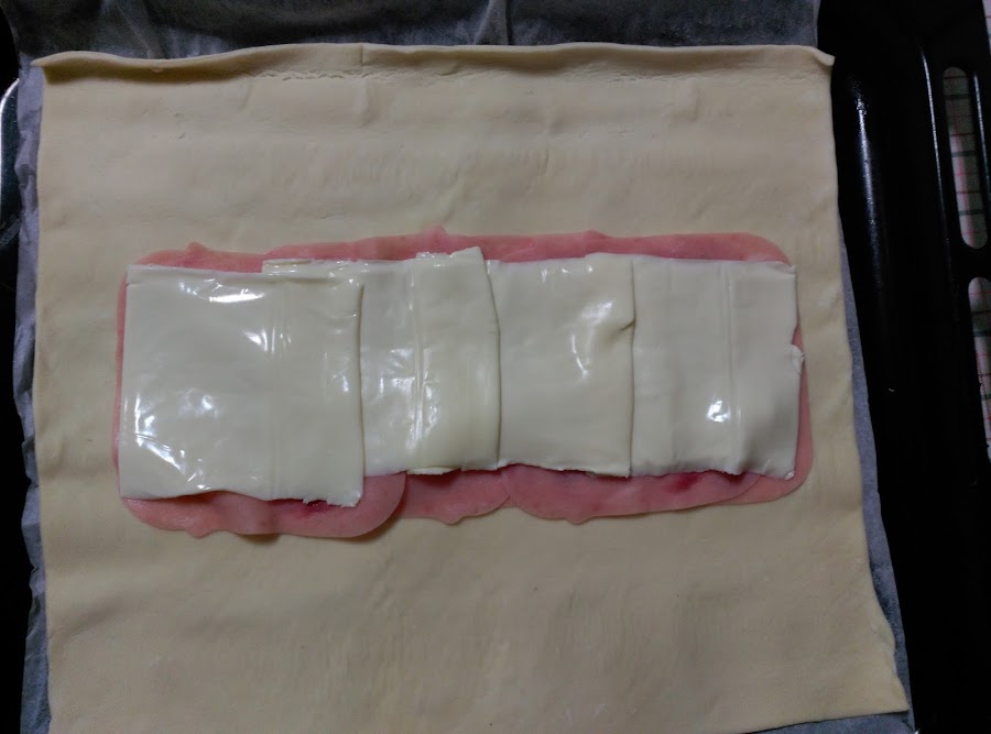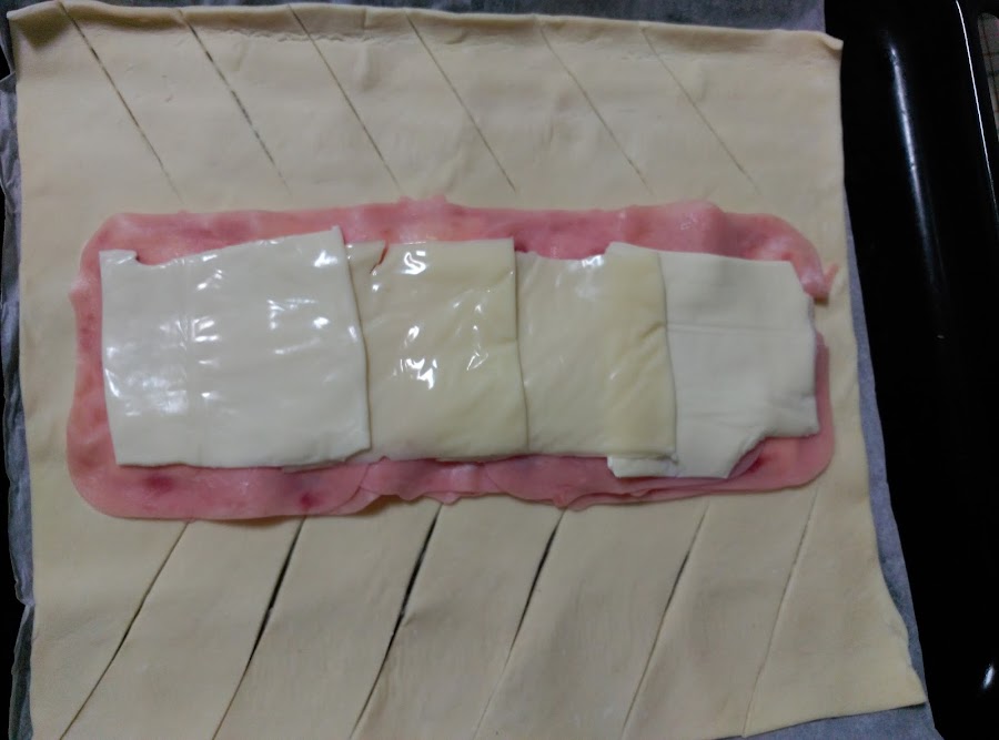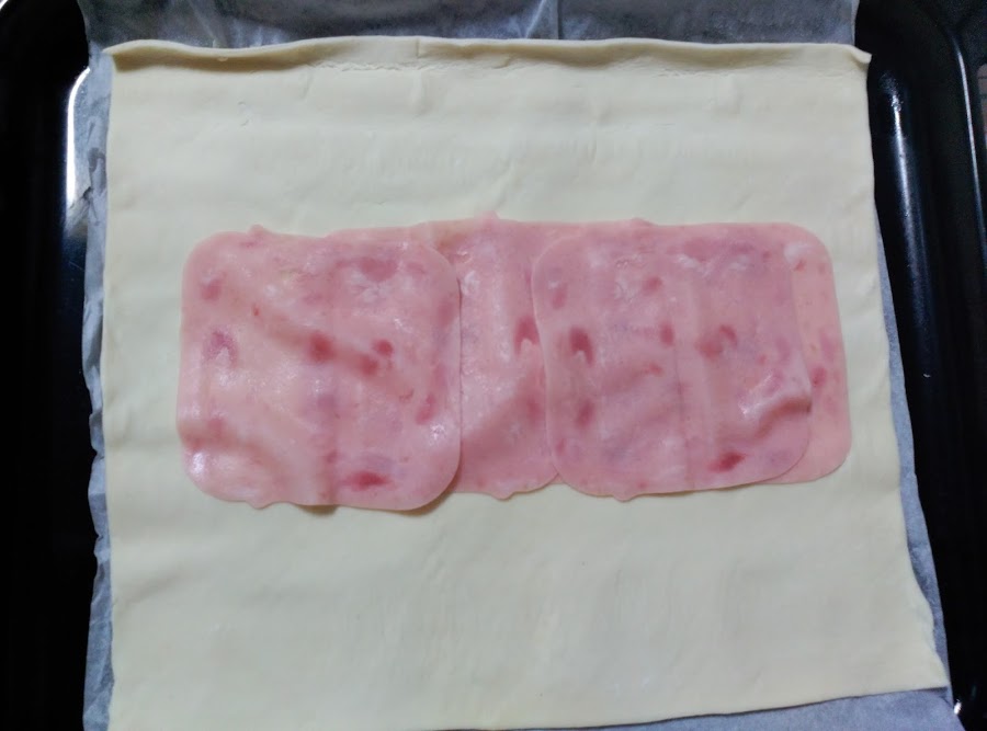 Puedes sustituir el jamón por otro embutido o hacerlo combinado yo en mi caso hice uno tambien de salchichón ya que vienen dos rollos de hojaldré y lo aproveché.