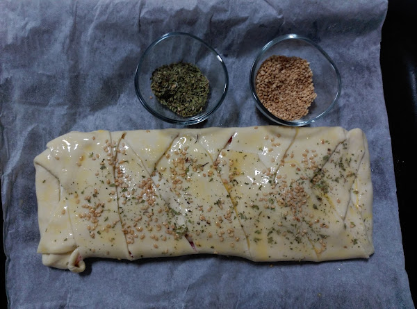 Espolvorea por encima orégano y las semillas de lino. Si te gusta cualquier otra especie, no dudes en utilizarla.