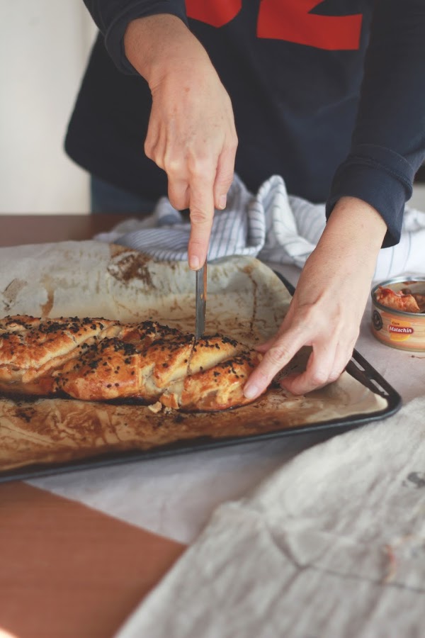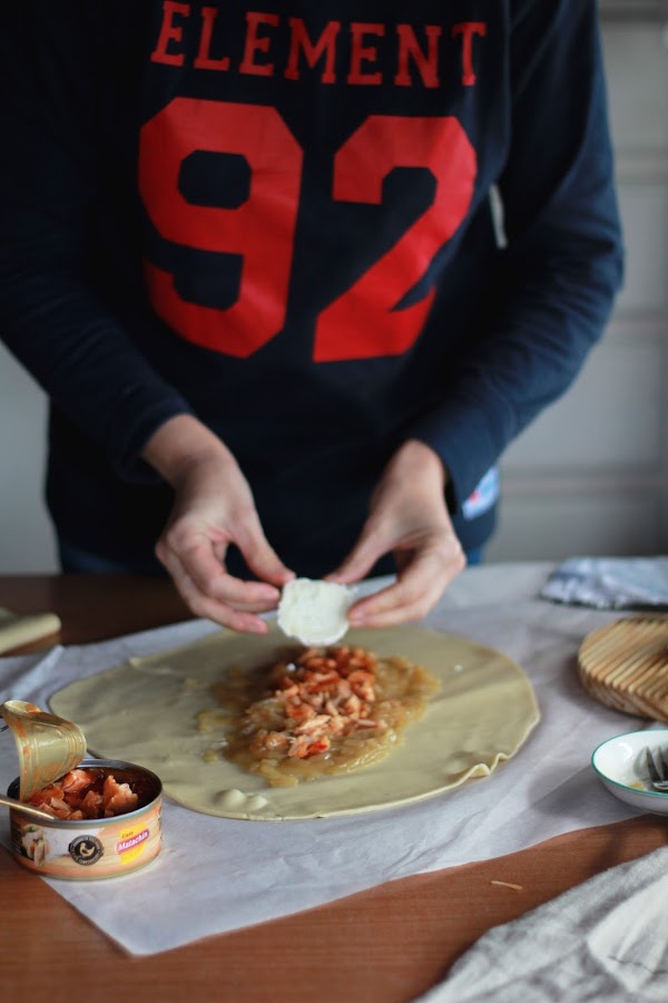 Las conservas dan mucho juego para hacer recetas y si tienes que hacer la multiplicación de los panes y los peces, esta trenza es de las mejores que conozco para que coman unos cuántos !