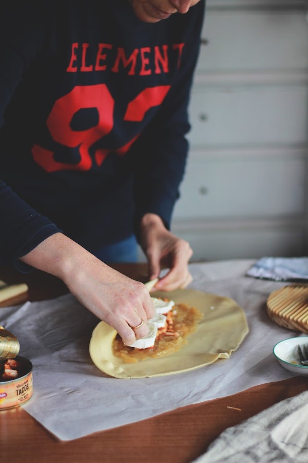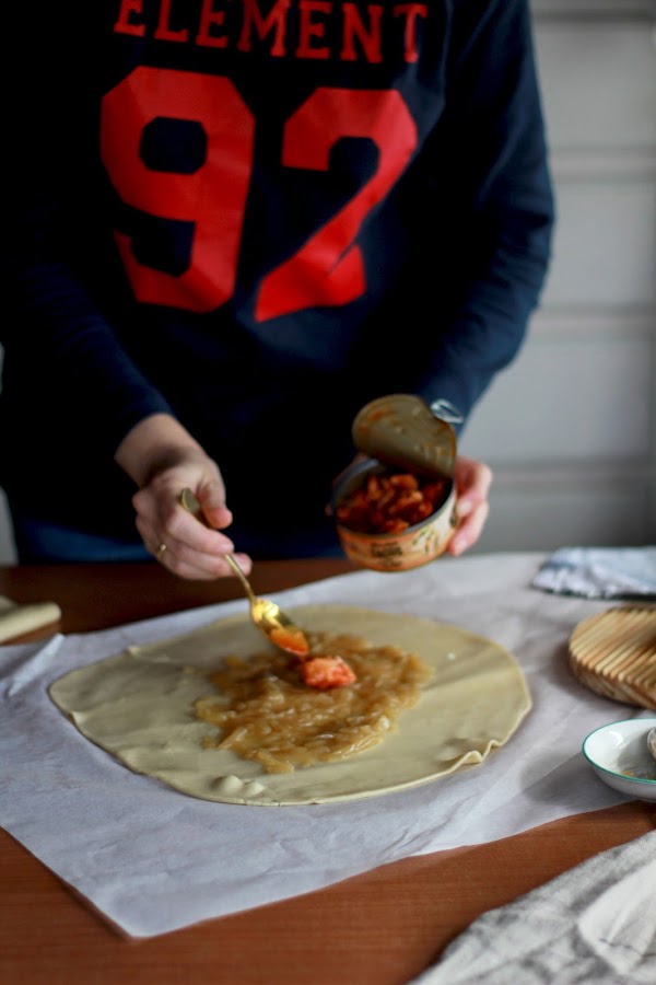 La idea para esta receta me la dio mi Cristina @unpedacitodecielo y su maravillosa galette de cebolla y queso de cabra,otra estupenda propuesta, que puedes tener casi lista para hornear justo antes de cenar.