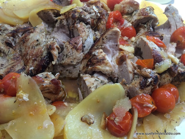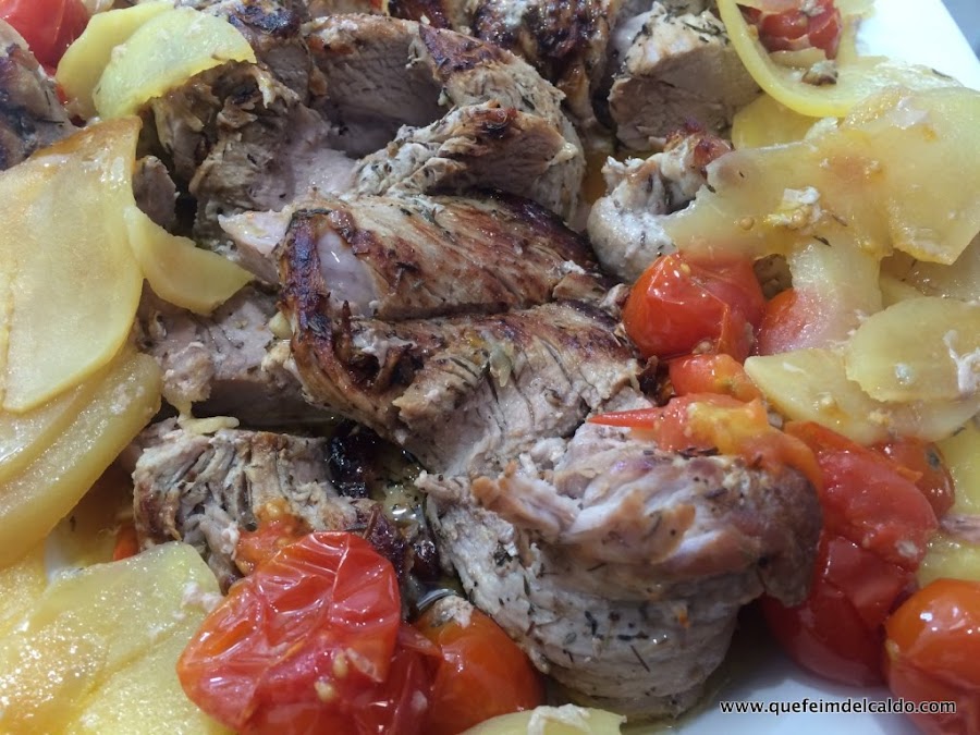 Pues hoy nos toca hacer un plato de carne, solomillo de cerdo, pero lo vamos a cocinar de una manera distinta, vamos a hacer una trenza con el solomillo y lo vamos a hornear acompañado de tomates cherry y de patatas. Tremendamente fácil de hacer.