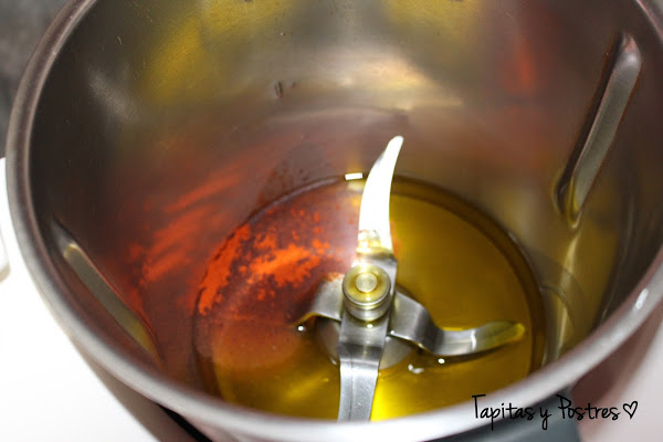 Ahora vamos con la masa, calentamos el aceite con el pimentón.