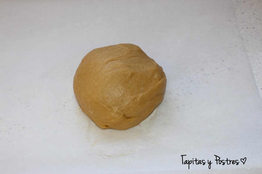 Sacamos la masa del vaso y dejamos que se enfríe. Amasamos y cortamos en dos trozos.