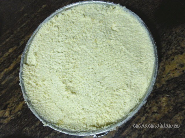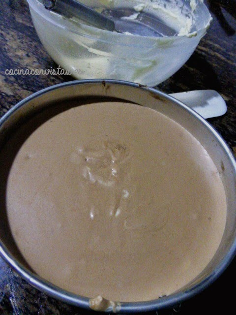 Nota: Me equivoqué y la mezcla de yemas y gelatina la uní con la nata (crema de leche) y luego con el chocolate, el resultado final fue que la tarta quedó un poco más sólida que otras veces, no tan esponjosa, pero aun así me sigue gustando muchísimo más que las que se elaboran con cuajada.