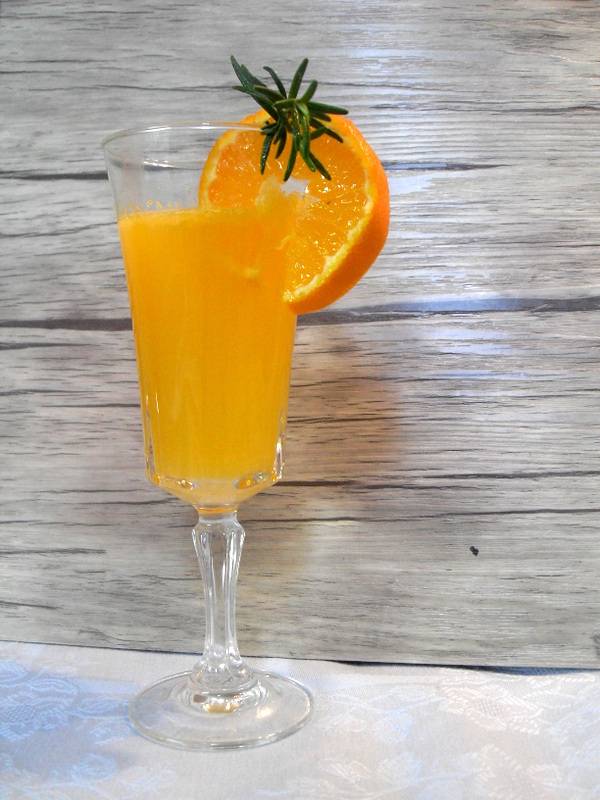 Introducir una ramita de romero dentro durante 5 minutos, quitar y adornar con una rodaja de mandarina y romero.