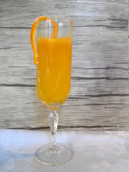 Llenar media copa de cava, agregar 20 ml de Licor de naranja y el resto de zumo de naranja.